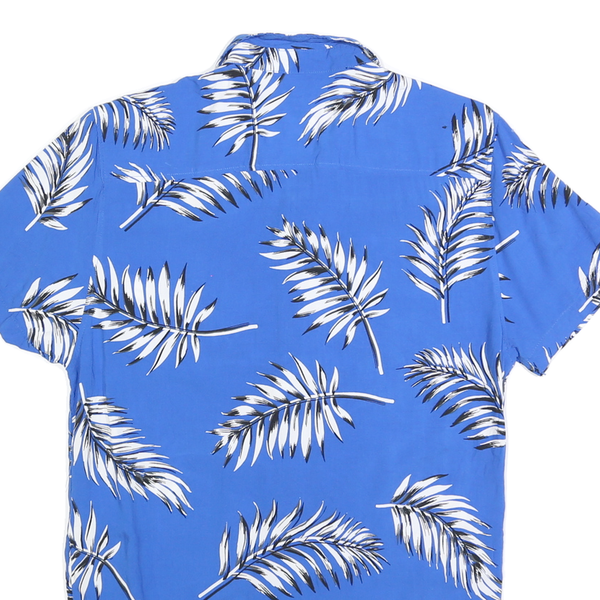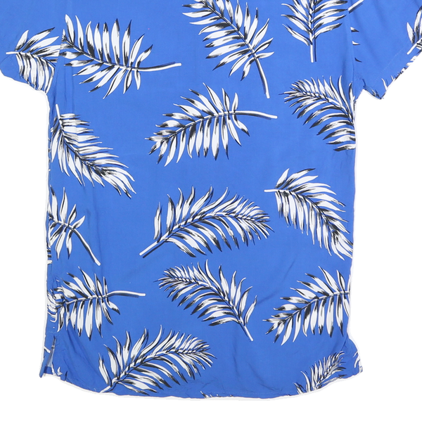 FSBN Mens Blue White Leaf Pattern Shirt S Slim Fit Casual Summer Polyester