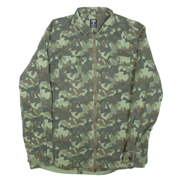 FSBN Mens Military Jacket Green Cashmere Camouflage L