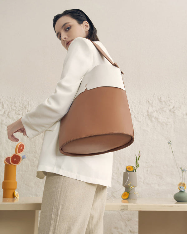 As a larger version of the Gaia bag, the Gaia Jumbo features the same iconic reverse lapel and functional inside pockets. Perfect for those who prefer larger bags to hustle between busy workdays, frantic shopping sprees, and the grueling workout sessions.