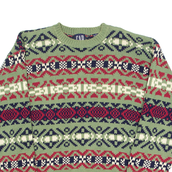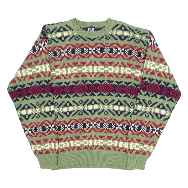 GAP Mens Patterned Jumper Green Crazy Pattern Chunky Knit M