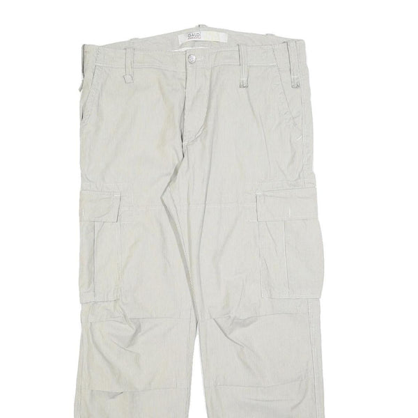 GAUDI Mens Cotton Blend Relaxed Beige Cargo Trousers W38 L32 Comfortable Zip