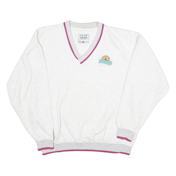 GEAR Mens White Sweatshirt XL V-Neck Cotton Blend Casual Retro Style