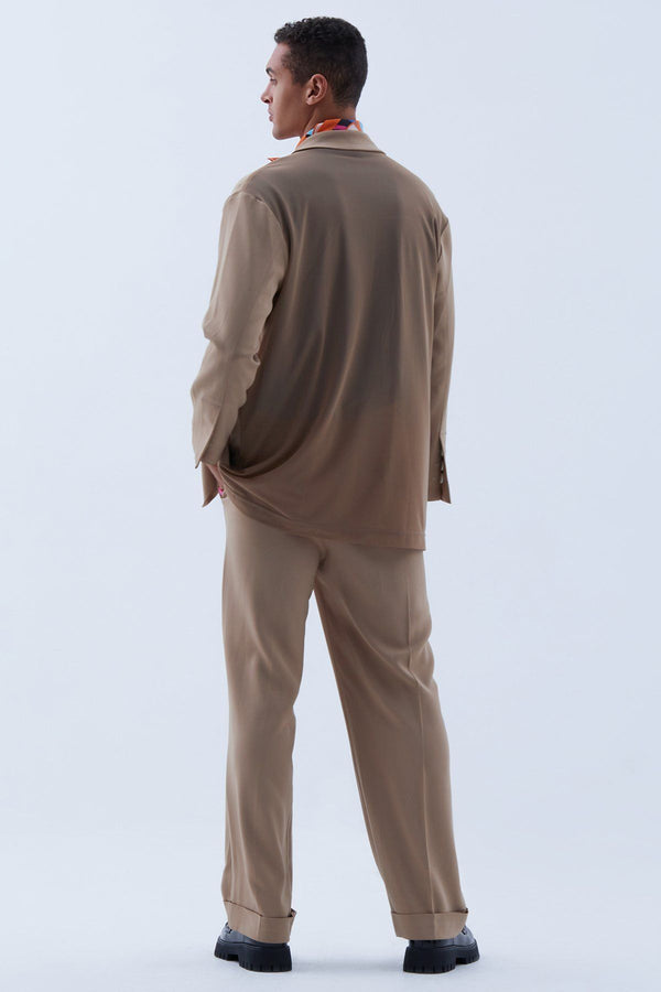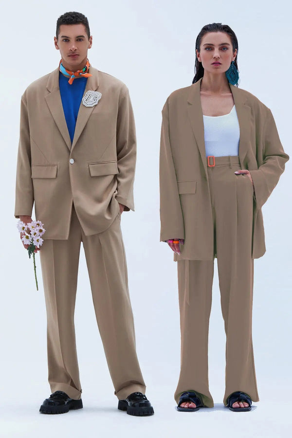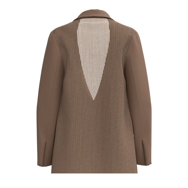We have designed our Androgynous Beige Jacket with a relaxed fit that is slightly oversized with soft structural lines. This version has a full mesh back, talk about ventilation! Keeping you sharp and cool at the same time. Gender neutral in style, this blazer is designed to be loved by all. It's men's, women's, unisex. It's whatever you want it to be.