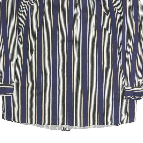 GEOFFREY BEAN Mens Blue & White Striped Shirt L Cotton Long Sleeve Button