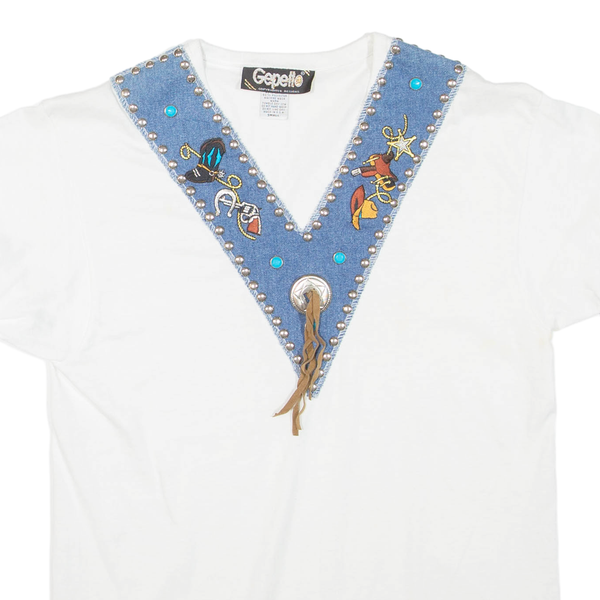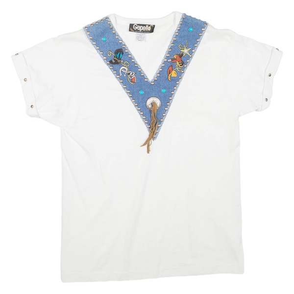 GEPETTO Womens T-Shirt White V-Neck S