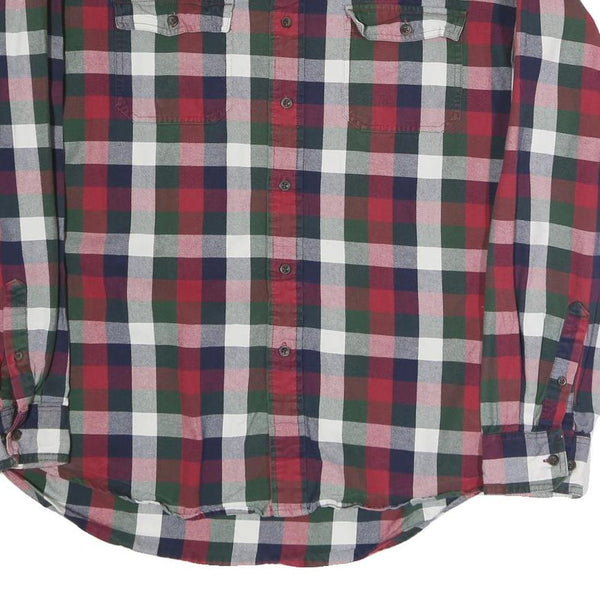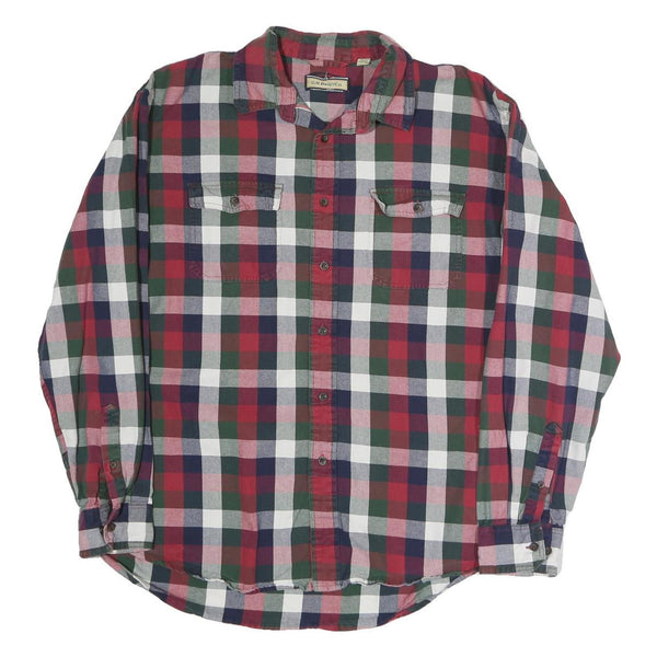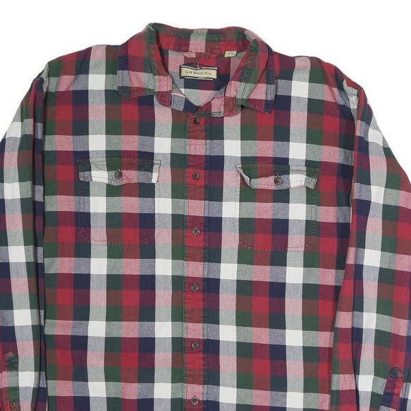 GH.BASS&CO Mens Red Green Navy Check Shirt L Cotton Blend Casual
