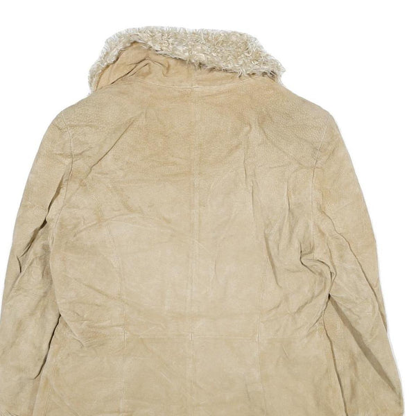 Home GIACCA Womens Beige Leather Jacket L Suede Fur Trim Button Closure Stylish