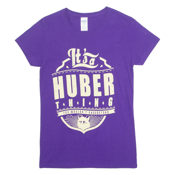 GILDAN It's A Huber Thing Mens T-Shirt Purple Crew Neck S