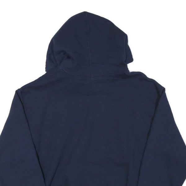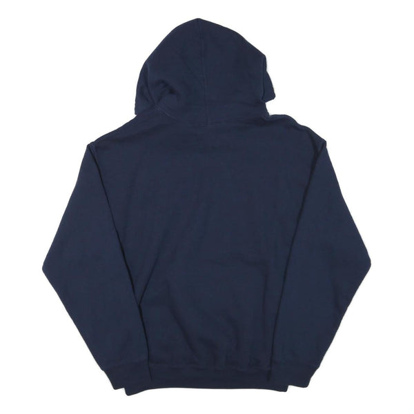 GILDAN Mens Blue Airport Basketball Hoodie M Cotton Blend Pullover Sweatshirt