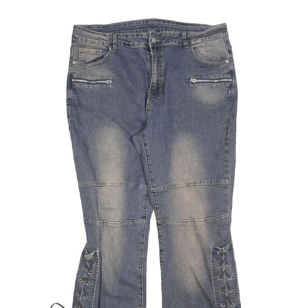GILIPUR Womens Jeans Blue Regular Flared Denim Medium W36 L30 Lace-Up Detailing
