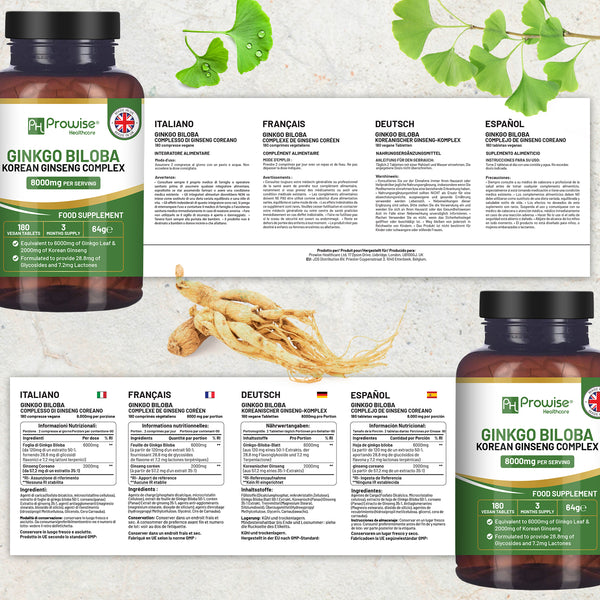 Prowise Ginkgo Biloba and Korean Ginseng 8000mg per serving contribute to normal psychological function as well as to normal functioning of the nervous system. This Ideal combination of Ginkgo Biloba and Korean Ginseng helps to maintain cognitive function and mental performance.