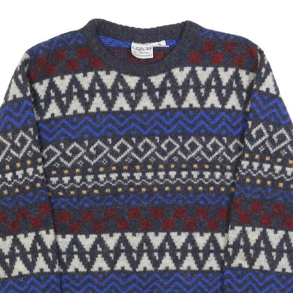 Giorgio womens blue & red patterned wool jumper crew neck cable knit m stylish