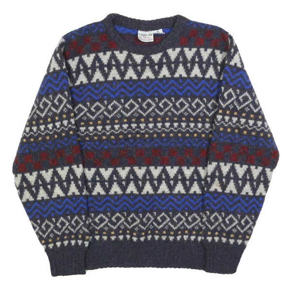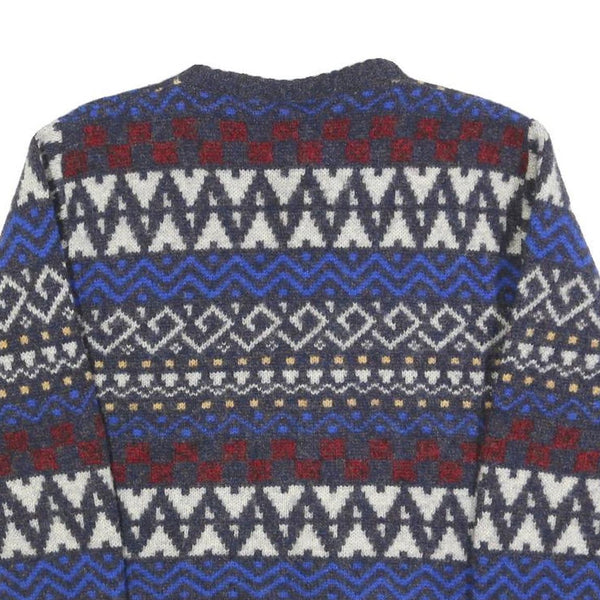 GIORGIO Womens Blue & Red Patterned Wool Jumper Crew Neck Cable Knit M Stylish
