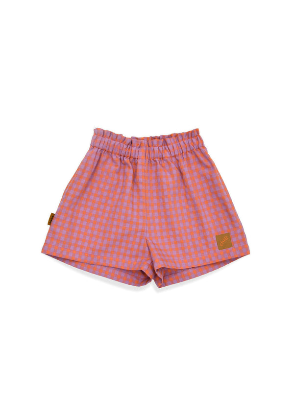 How cool are these kids girls shorts? We absolutely adore the checked bright pink and orange color! These girls shorts, designed by Hebe, are meticulously crafted from soft cotton ensuring ultimate comfort. With pockets to keep secrets safe, these girls summer shorts are perfect for any adventure. The elastic waist adds to the longevity of these cotton shorts, allowing them to withstand countless seasons. Made with care through fair trade practices in Latvia, every pair of girls summer shorts is a testament to quality and sustainability. For a complete look, we also offer a matching jacket. And don't worry; we haven't forgotten about the mini-me options - women's matching shorts are available too, so you can win in style!