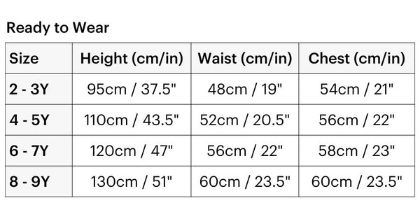 Please note that the above size chart is a guide and may vary slightly. If you would like assistance, please contact us HERE.