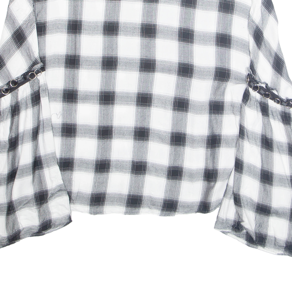 GLAMOROUS Womens Printed Blouse White Long Sleeve Plaid L