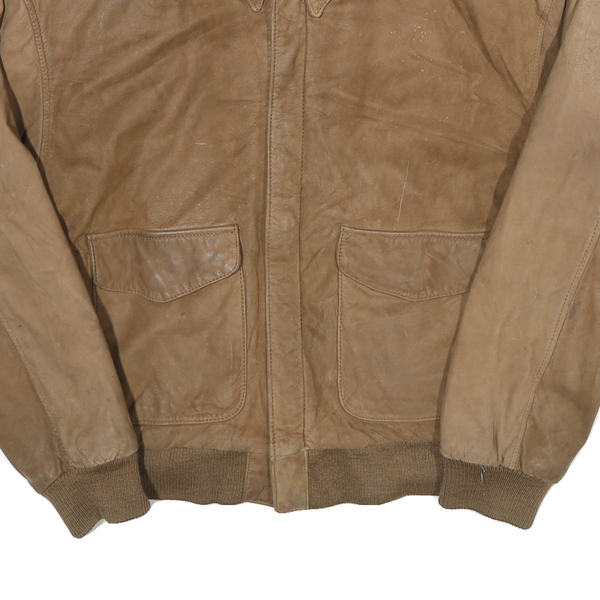 GLOBAL IDENTITY Womens Brown Leather Bomber Jacket L Zip Plain Stylish