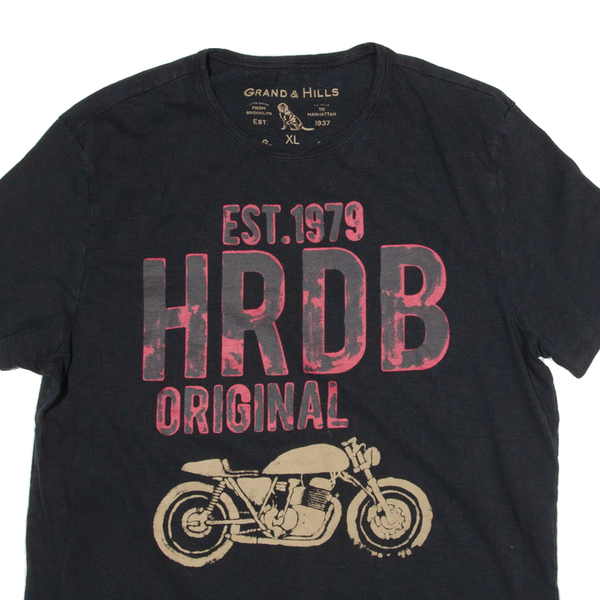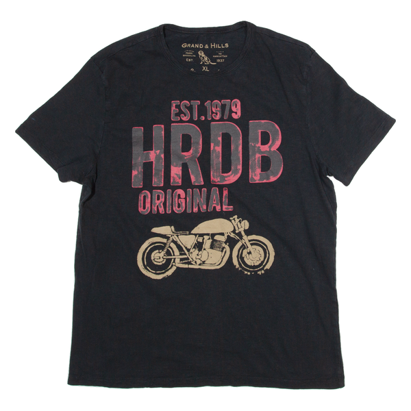 GRAND AND HILLS Bike Print Mens T-Shirt Black 90s XL