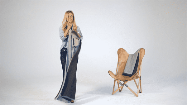 This blanket features two tones of gray (aluminum and anthracite to be precise) divided by a bright limon whip stitch down the center. The blanket edges also bear a beautiful, light-smoke whip stitch. Made from 51% recycled cotton, 12 water-bottles worth of plastic, and unbelievably soft. Custom woven for NEWLY in California USA.