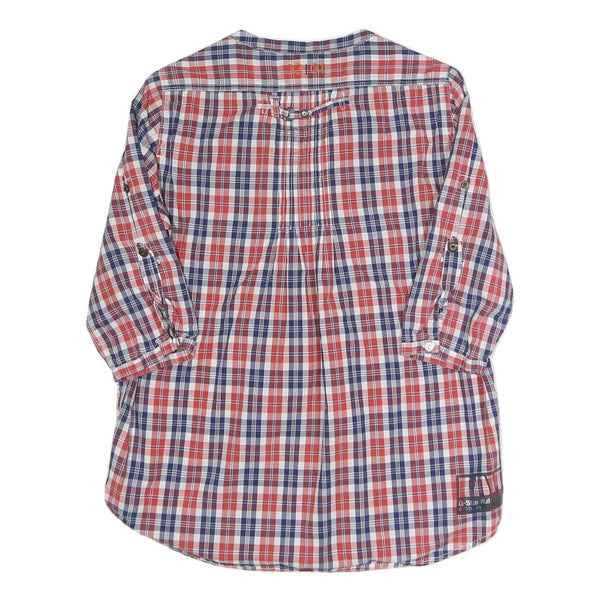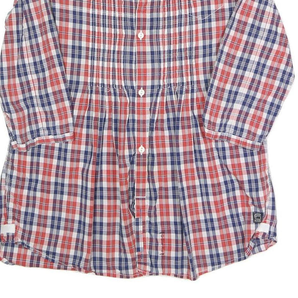 Gstar womens blue & red checked shirt 3/4 sleeve button neck m stylish casual