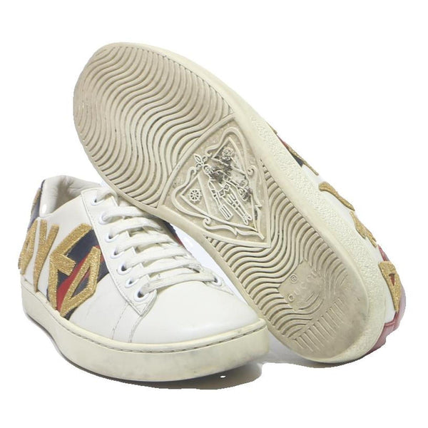 GUCCI Ace Womens Leather Trainers White Blue Red UK 3 Stylish Fashion