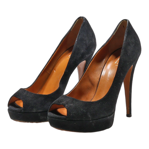 GUCCI Peep Toe Heels Black Leather Womens UK 5