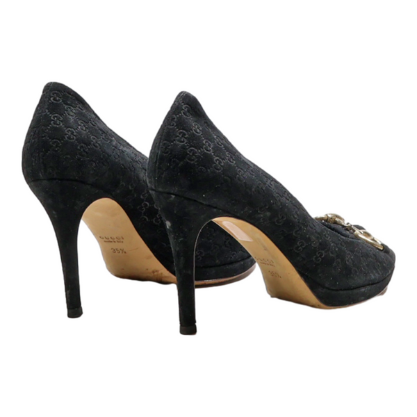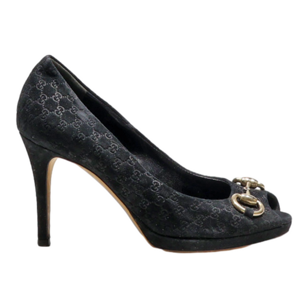 GUCCI Peep Toe Heels Black Suede Womens UK 2.5
