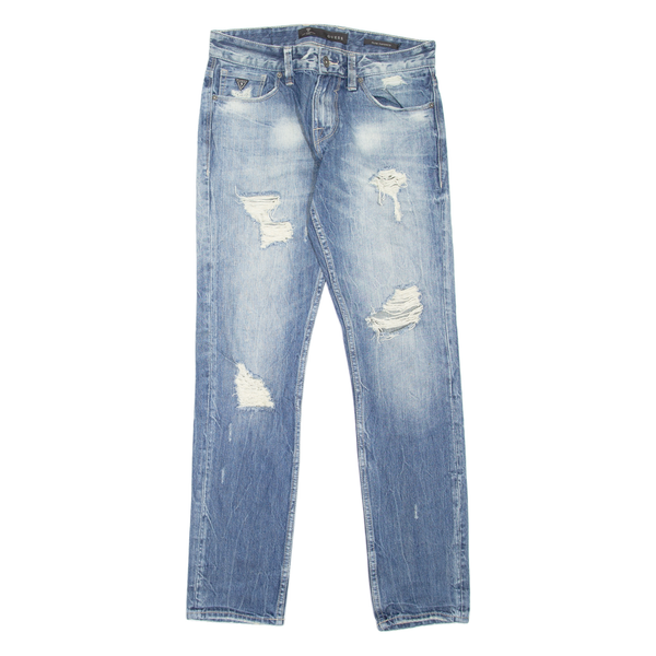 GUESS Distressed Mens Jeans Blue Slim Tapered Stone Wash W30 L32