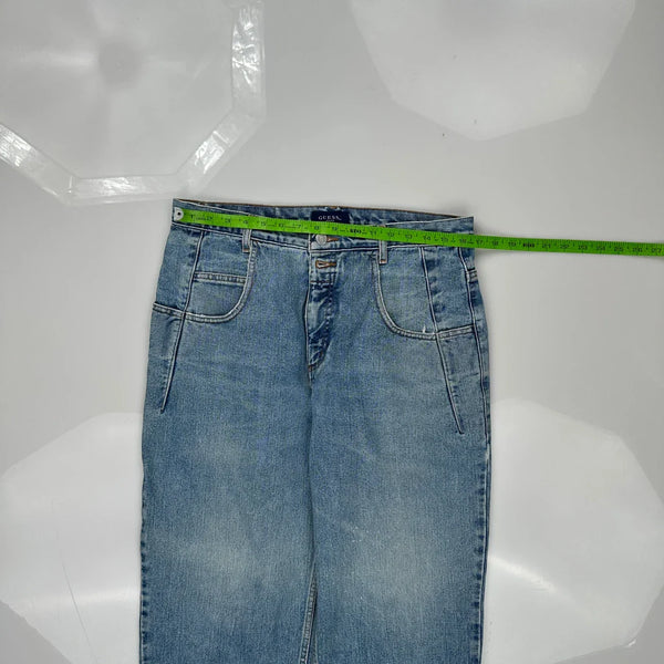 Light Wash Guess Jeans With Slight Wear On Hems.