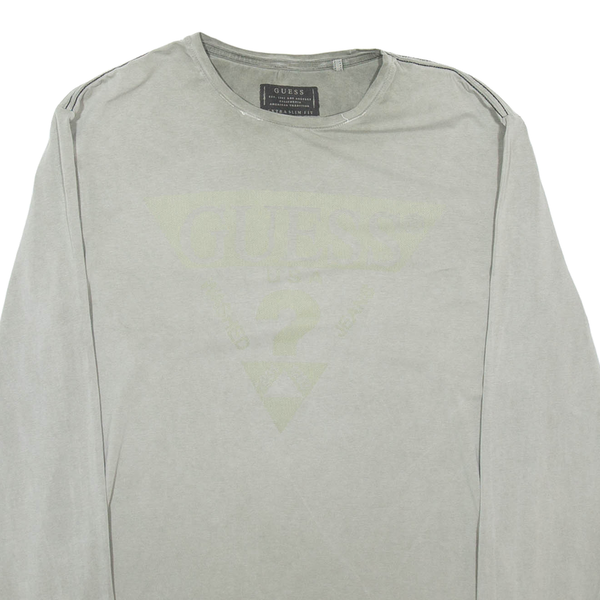 GUESS Mens T-Shirt Grey Long Sleeve XL