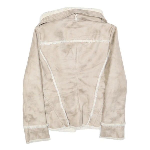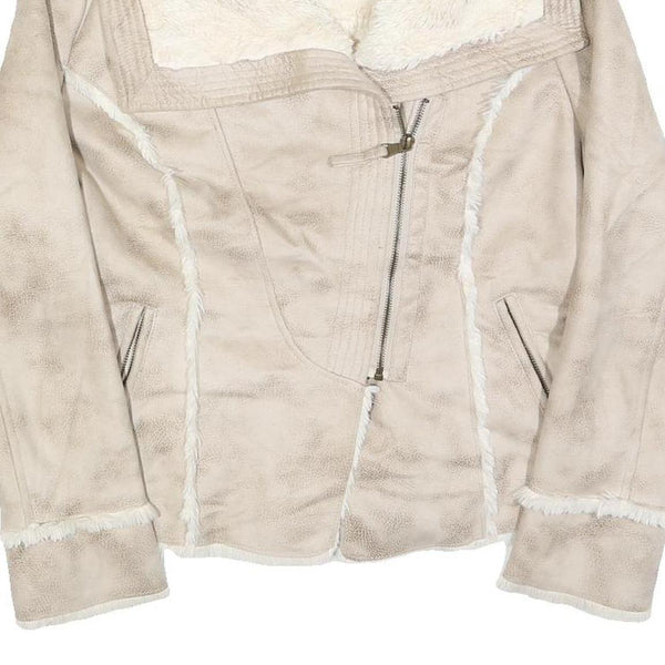 GUESS Womens Beige Faux Suede Jacket L Polyester Zip Fastening Stylish Warm