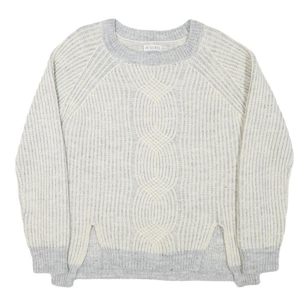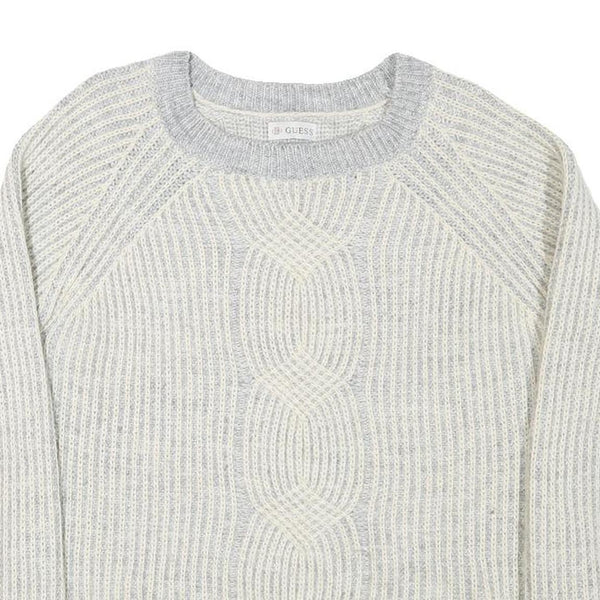 GUESS Womens Grey & Cream Cable Knit Pullover Jumper L Soft Comfortable