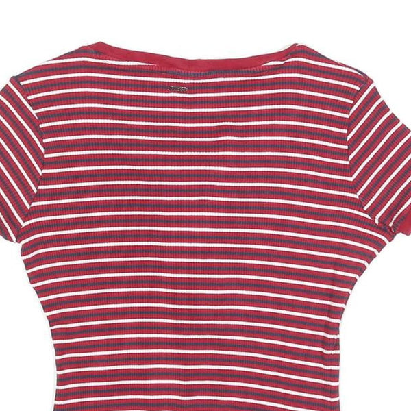 GUESS Womens Red & White Striped Graphic T-Shirt M Short Sleeve Scoop Neck