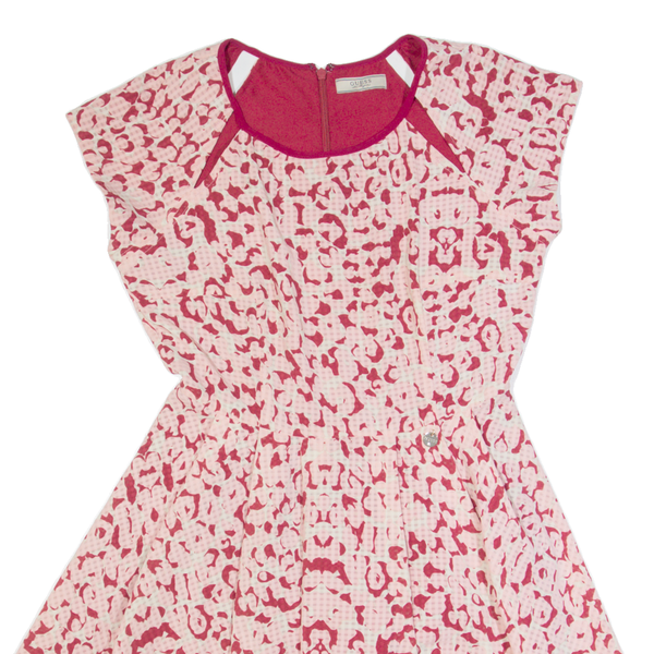 GUESS Womens Skater Dress Pink Animal Print Short Sleeve Short S