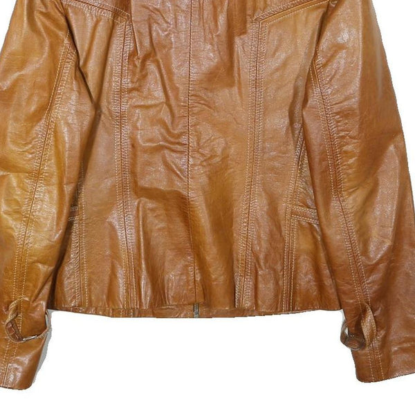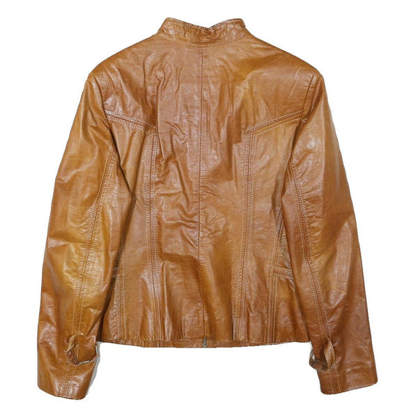 Guns leather womens brown leather zip jacket 2xl slim fit classic stylish