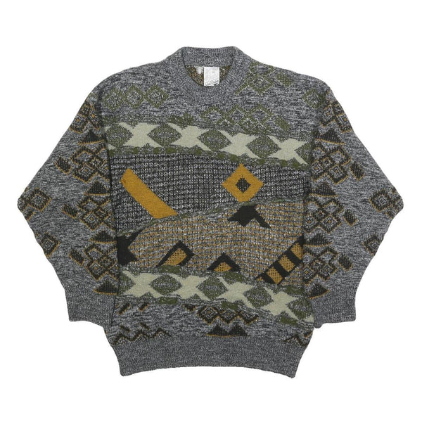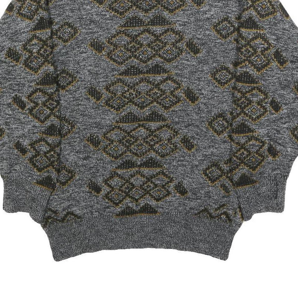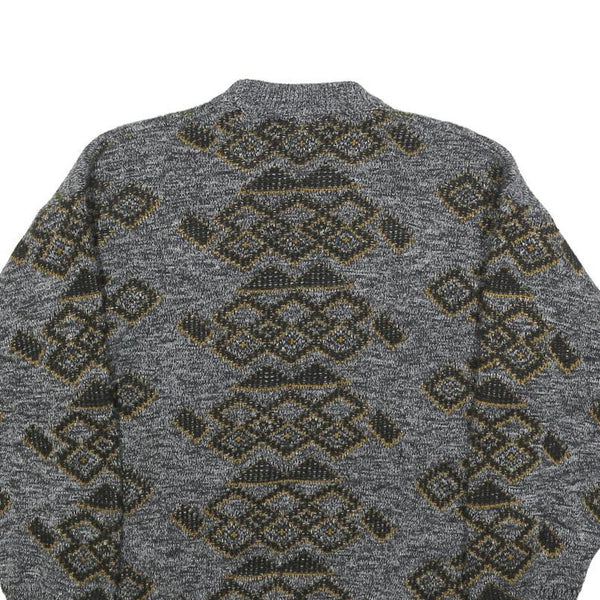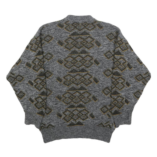 H. AL-JABI Mens Grey Patterned Jumper Crew Neck Basic Knit S Vintage Style