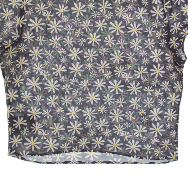 H&M DIVIDED Mesh Sheer Womens Printed Top Blue Floral M