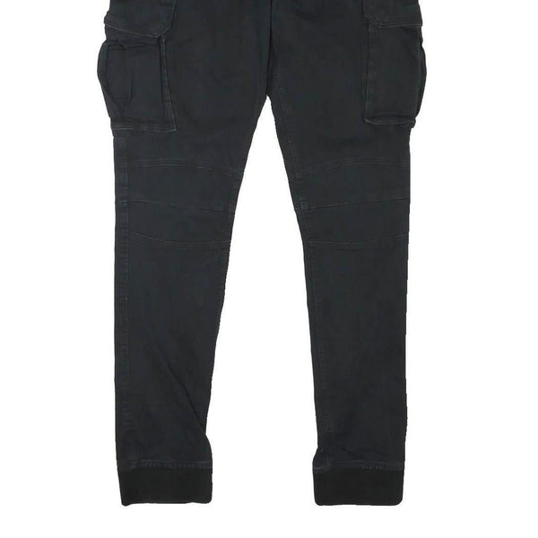 H&M Mens Cotton Blend Black Slim Cargo Trousers W31 L29 Drawstring Waist