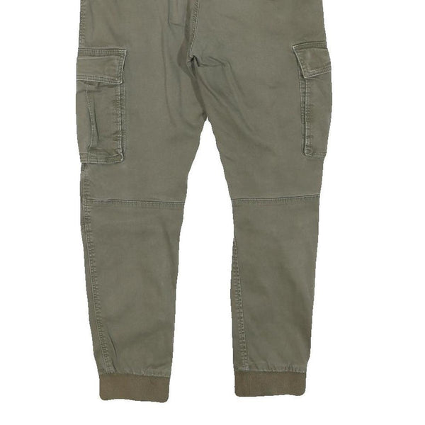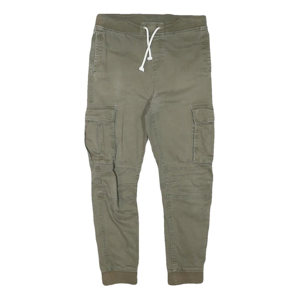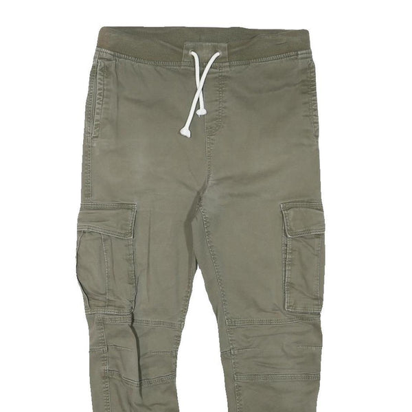 H&M Mens Cotton Blend Green Slim Cargo Trousers W30 L25 Casual Drawstring