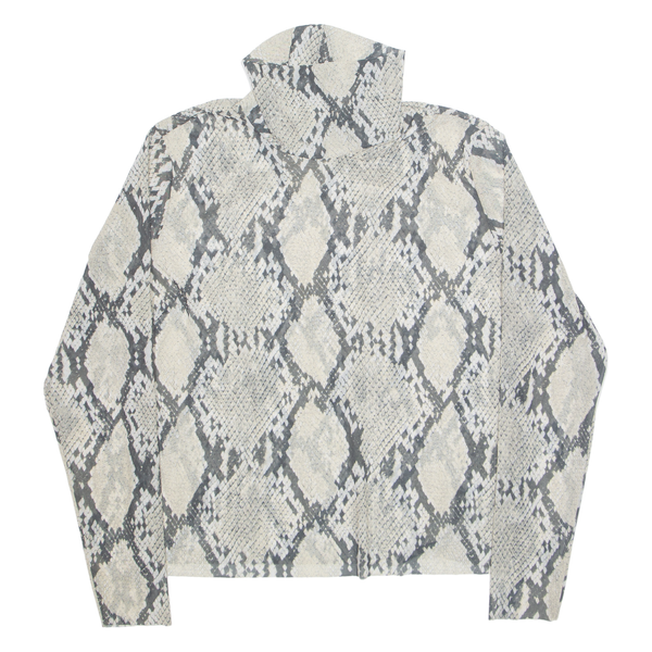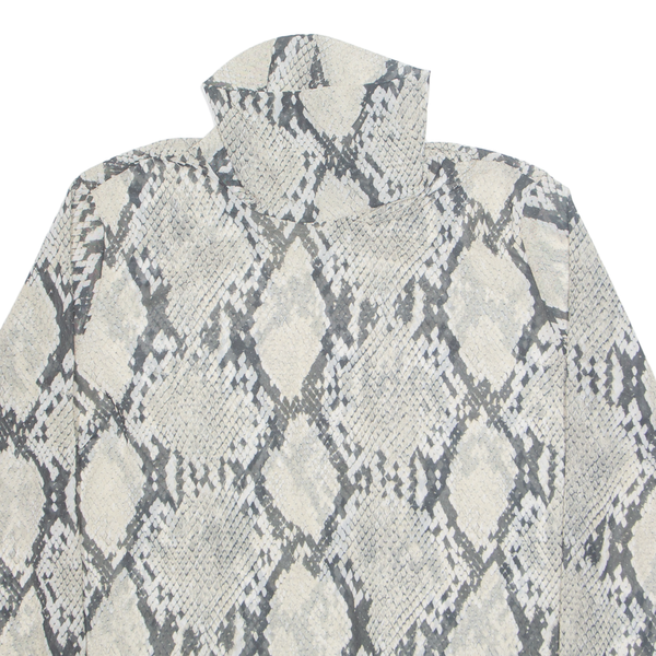 H&M Sheer Snake Womens Printed Top Cream High Neck Long Sleeve Animal Print 2XL