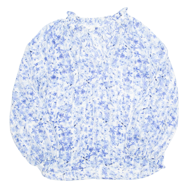 H&M Sheer Womens Printed Blouse Blue Long Sleeve Floral XS