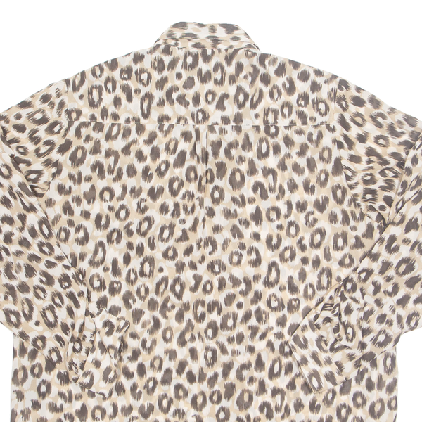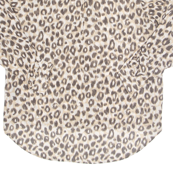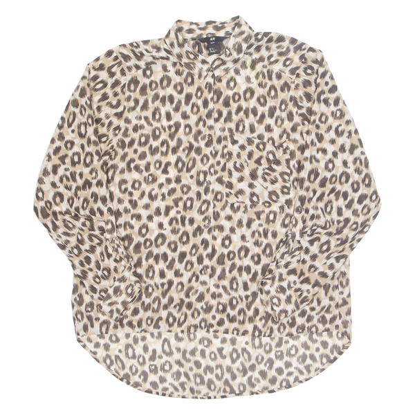 H&M Sheer Womens Printed Shirt Brown Collared Long Sleeve Animal Print S