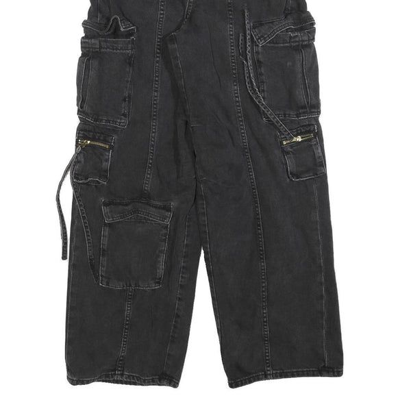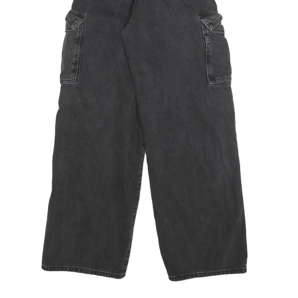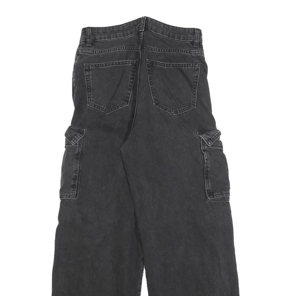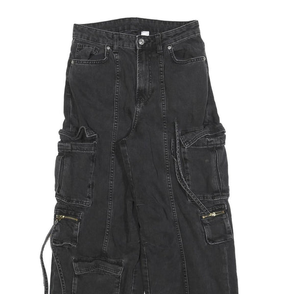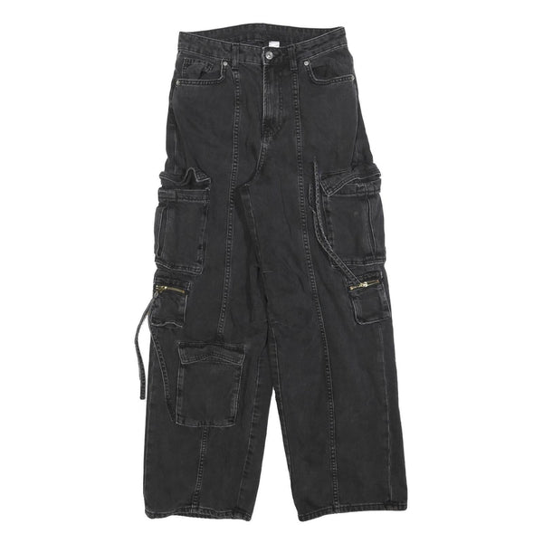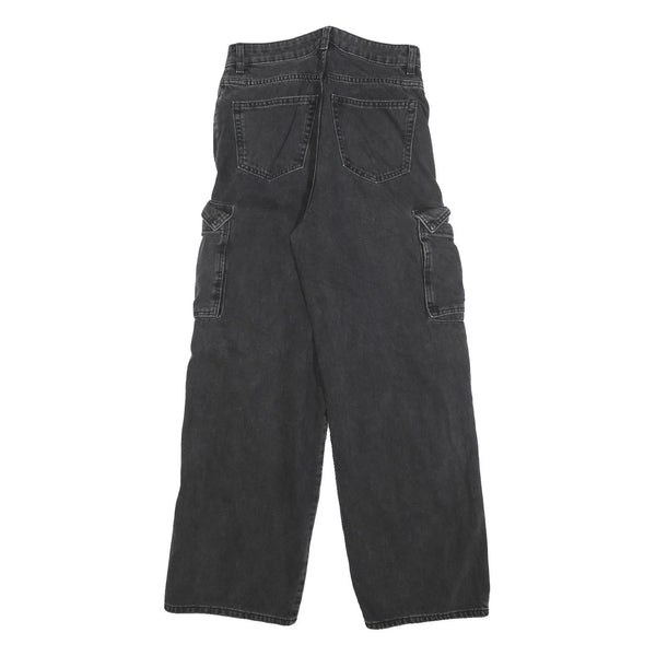 H&M Womens Black Relaxed Cargo Denim Light W28 L30 Cotton Blend Casual Pockets