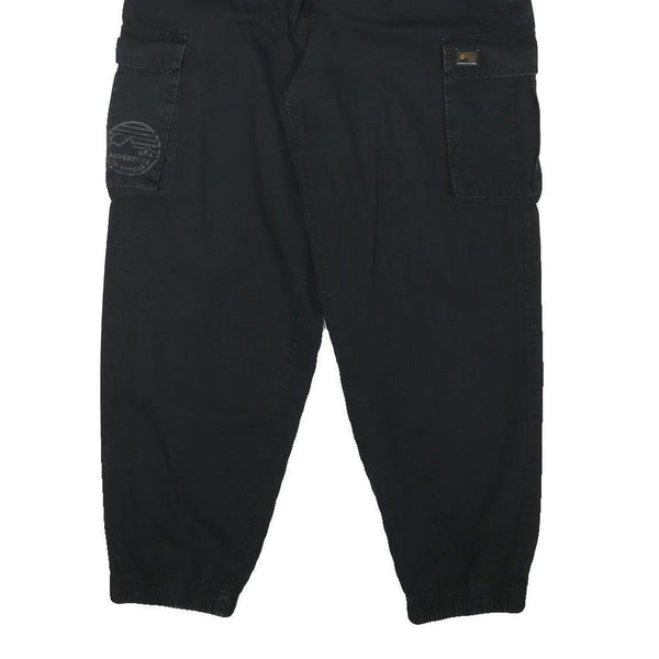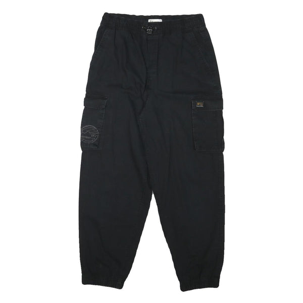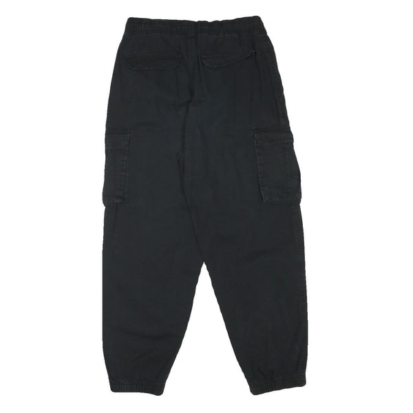 H&M Womens Cotton Blend Black Relaxed Cargo Trousers W28 L26 Drawstring Waist
