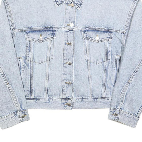H&M Womens Light Blue Denim Jacket L Cotton Blend Button Plain Casual Outerwear