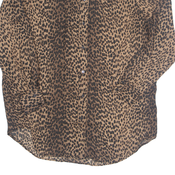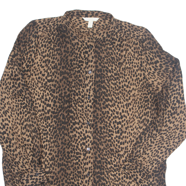 H&M Womens Printed Blouse Brown Long Sleeve Animal Print S