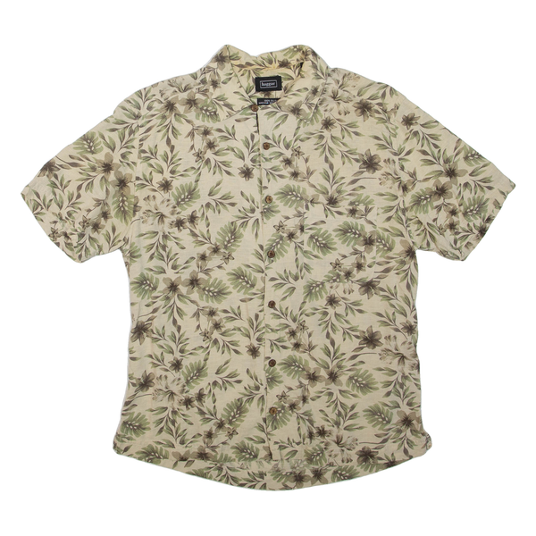 HAGGAR Mens Hawaiian Shirt Green Silk Floral S