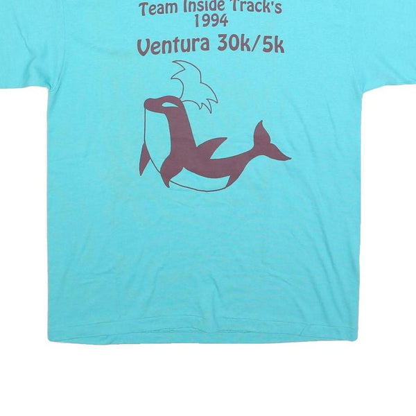 This Hanes Mens T-Shirt features a bright blue colour with a graphic print on the front. The print reads "Team Inside Track's 1994 Ventura 30k/5k" above an abstract or stylised marine animal resembling an orca. The back of the shirt is plain blue with no graphics.