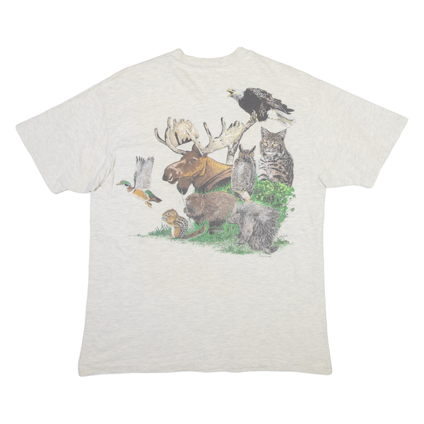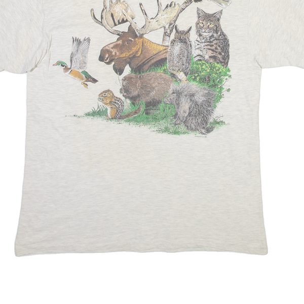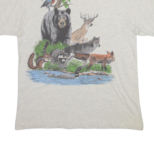 HANES Rare 80s Animals Mens T-Shirt Cream L