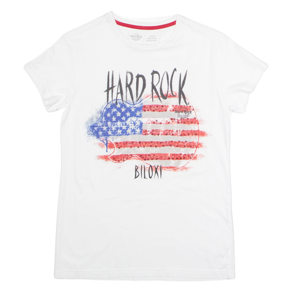 HARD ROCK CAFE Biloxi Womens T-Shirt White USA Crew Neck M